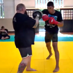 リーチ差のあるヒザ蹴りを放つエドポロキング