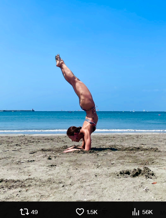 ビーチで逆立ちポーズ!(@yamanakaerina)