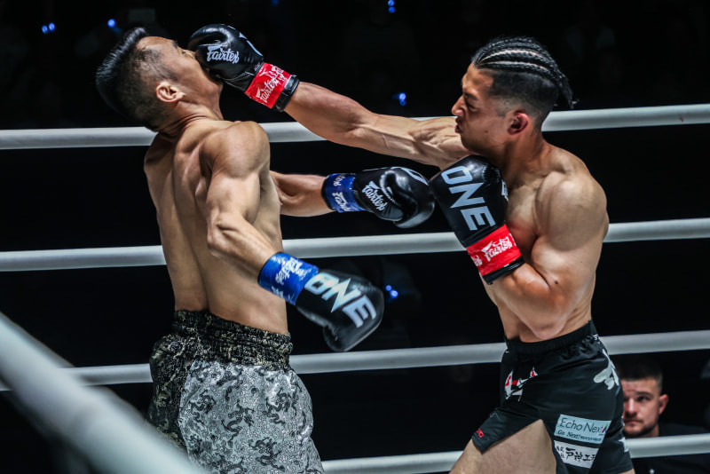 秋元のノーモーションの右でルイの顔面を跳ね上げる©️ONE