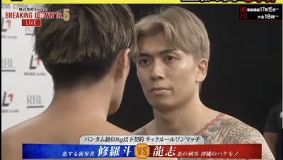 龍志も修羅斗と睨み合う(朝倉未来YouTubeより)