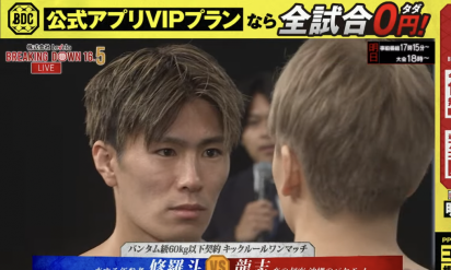 修羅斗が龍志を睨む(朝倉未来YouTubeより)