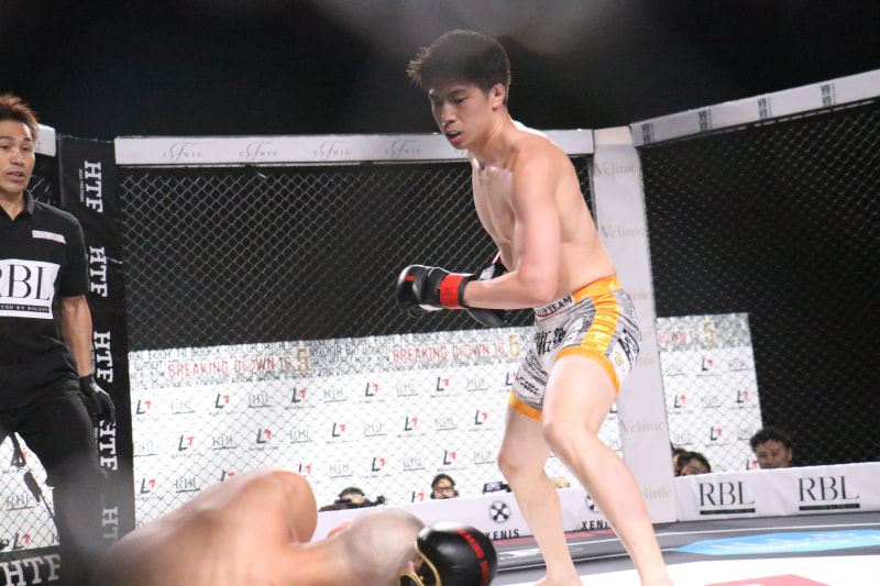 竹見のパンチがヒットし、としぞうがダウン!