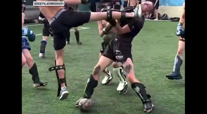サッカーとキックボクシングの融合競技の衝撃動画がネットで流れている(@black_belts)
