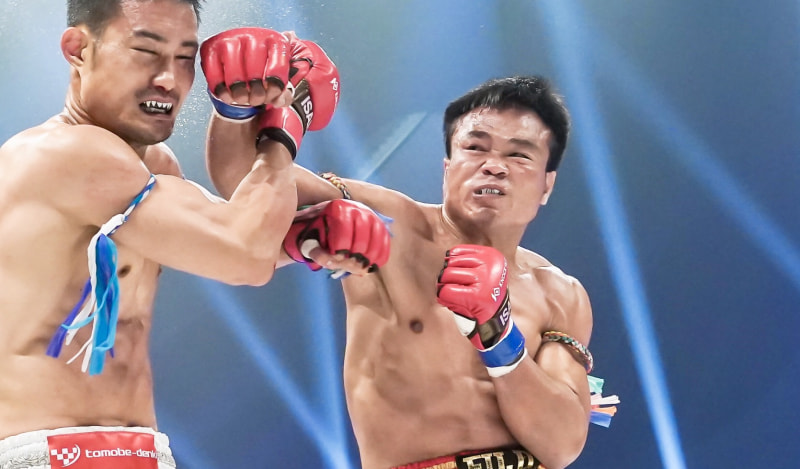 KOで王者となったゴンナパー(右)、ホープ下地と対決