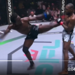 ジョセフ(左)が”背筋凍る”飛びヒザ蹴りを炸裂させた(@MMArena_)