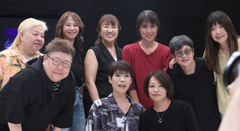 プレゼントのコーナーに集まった面々、北斗晶(後列左から3番目)が司会を務めた