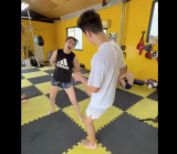 - ぱんちゃんがローキックを受ける練習(@panchanrinaより)