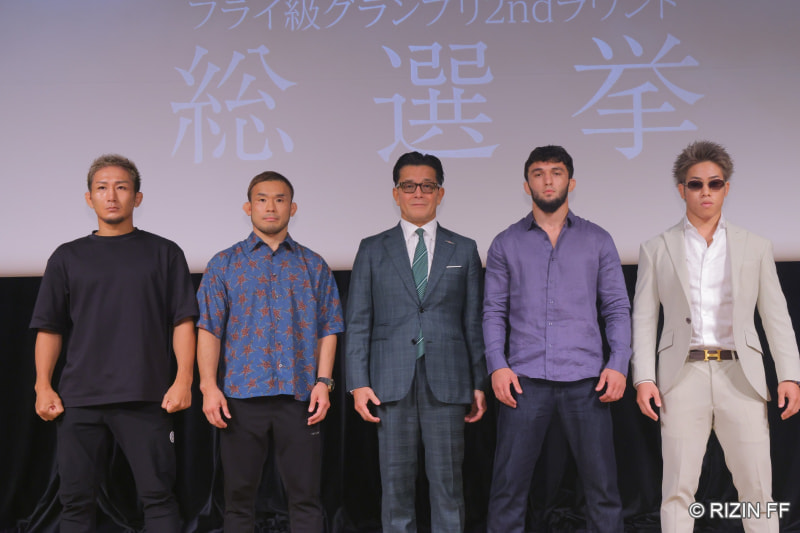 フライ級GP準決勝は、扇久保(左から2番目)vsガジャマトフ(右から2番目)、元谷(左)vs神龍(右)に決定