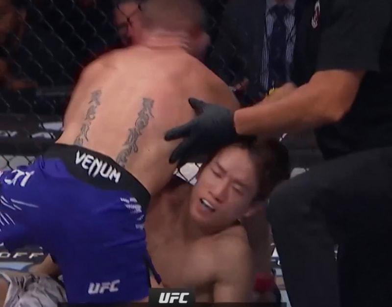 朝倉海がチョークで一本負けを喫した(@ufcより)