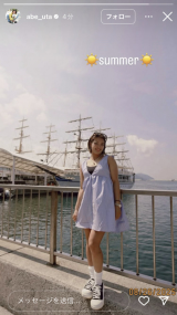 - 阿部がふわりワンピの長い脚を公開(本人のインスタグラムストーリーより)