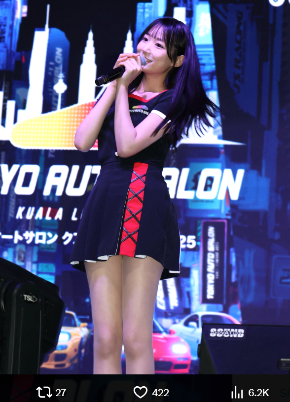 ミニワンピで長い脚を見せるしおりん(@shiori819)