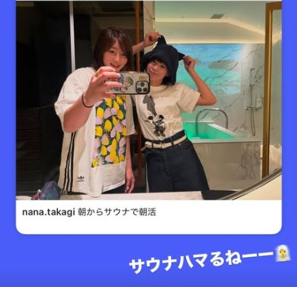 角田夏実(左)が高木菜那(右)とサウナ後ツーショット(@tsunoda_natsumiより)