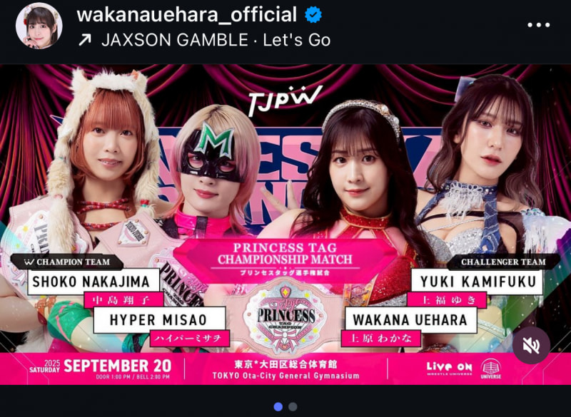 9月20日、プリンセスタッグ王座に挑戦!(@wakanauehara_officialより)