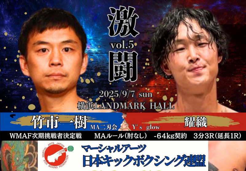 WMAF世界スーパーライト級次期挑戦者決定戦で対戦する耀織(右)と竹市一樹(左)