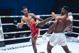 - セメリア(左)のパンチに前蹴りで対応するベスタティ©️GLORY