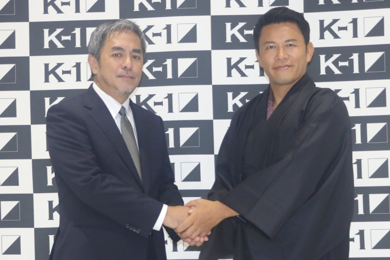 前K-1プロデューサー宮田氏と須藤氏がガッチリ握手