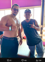 - 魔裟斗とのツーショットで太くなった腕を見せる皇治(@1_kouziより)