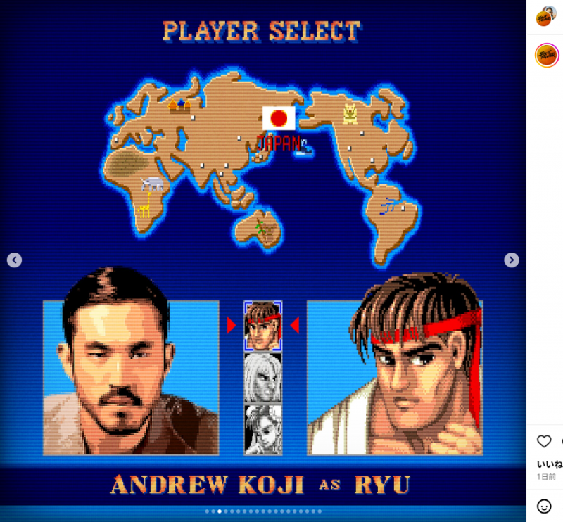 リュウ役のアンドリュー・コージ(@streetfightermovieより)