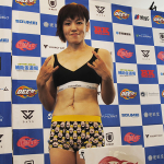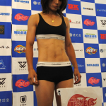 ケイトが黒のスポブラで美腹筋を見せ計量パス