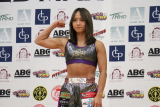 【フォト】松谷のマッスルポーズと腹筋!“19歳”末松もスポブラ姿で計量パス