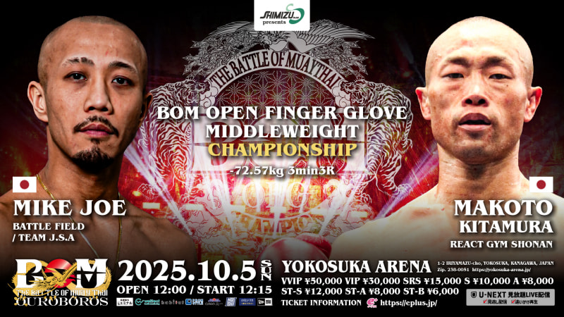 BOM OFGミドル級王座決定戦で対戦するMIKE JOE(左)と喜多村誠(右)