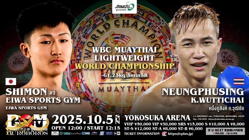 WBCムエタイ世界ライト級王座決定戦で対戦する士門・エイワスポーツジム(左)とヌンプーシン・コーウィティチャイ(右)