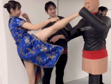 - チャイナ姿で二段蹴り!(@mina_horie)