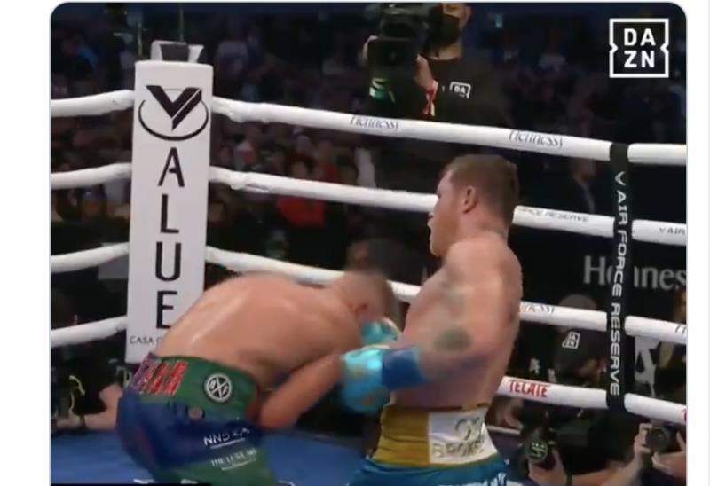 カネロの”複雑骨折させた”右アッパーがヒットした瞬間(DAZN twitterより)