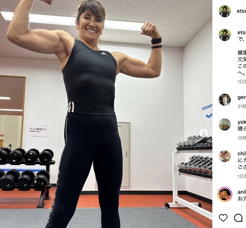 昨年、志穂美悦子さんの68歳マッスルボディ(@etsuko_shihomi)