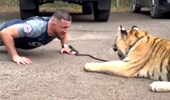 虎とフェイスオフするメラブ(@MerabDvalishvil)