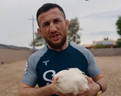メラブがニワトリを使ったトレーニングに挑戦(@Stake)