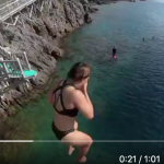 渡辺が人気観光スポット、赤崎遊歩道から飛び込む@kanawatanabe821より