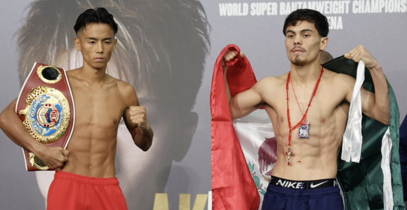 計量をパスした武居(左)とメディナ(右)が並ぶ