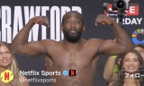 - クロフォードが公開計量でマッスルポーズ(@netflixsportsより)