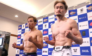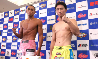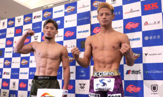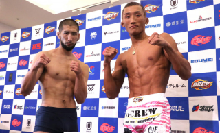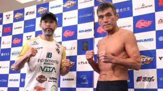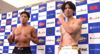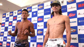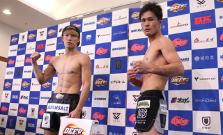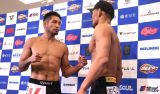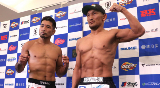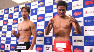 【DEEP】ストラッサー起一、バキバキ腕でマッスルポーズ!前王者・佐藤洋一郎と睨み合い=前日計量