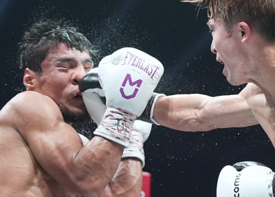 井上のパンチを被弾するアフマダリエフ©LeminoSECOND CARRERNAOKI FUKUDA