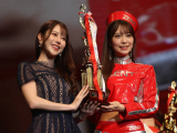 - 昨年度グランプリのK-1ガールズ名取くるみが松田にトロフィーを渡す