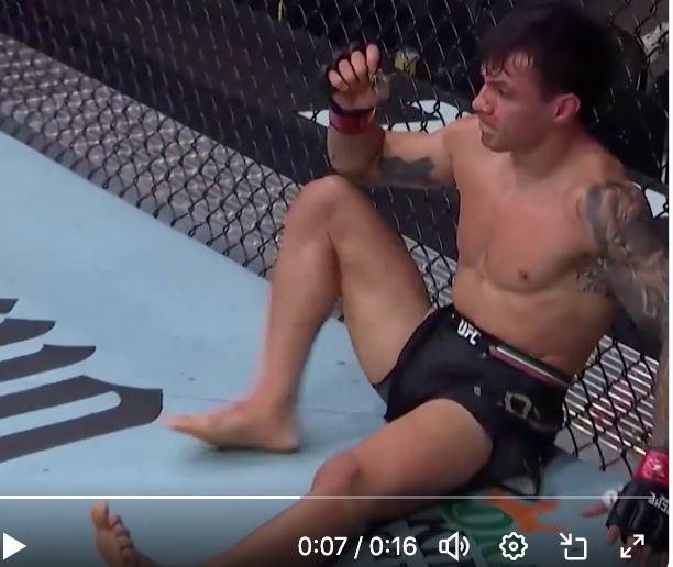 TKO負け、負傷した左足を投げ出し茫然とするコスタ