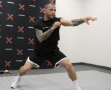 カーライルは公開練習で打撃のミット打ちを披露。豪快なヒジやハイキック、強烈なボディブロー連打など快音を響かせた。