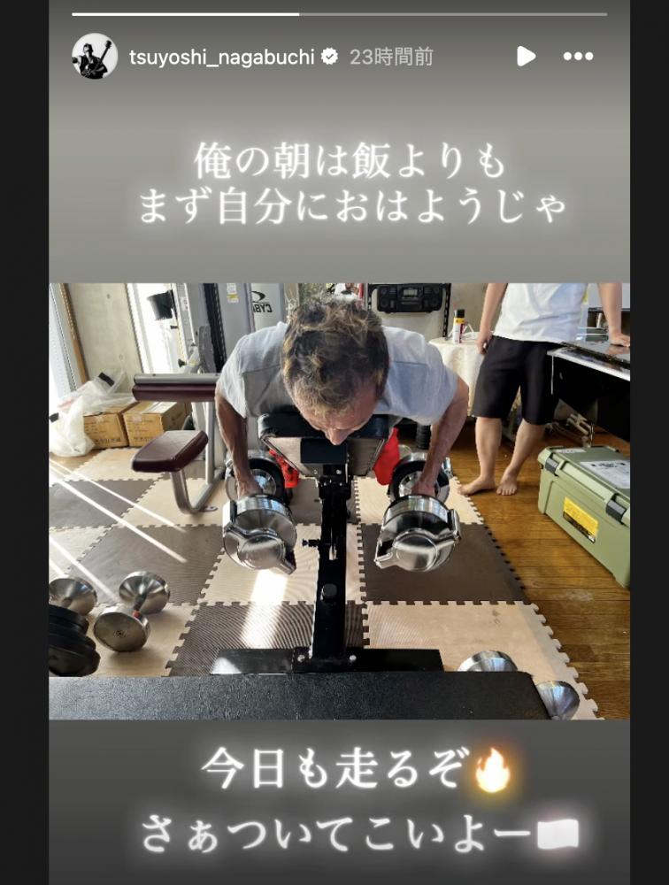 朝から気合のトレーニング!(長渕剛のインスタストーリーズより)