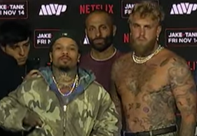 エキシビションマッチで対戦するデービス(左)とポール(Netfrix公式YouTubeチャンネルより)