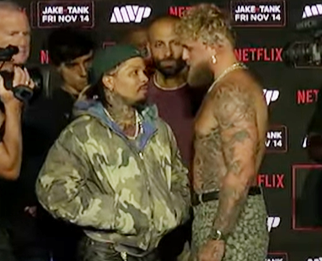 デービス(左)はポケットに手を突っ込み、冷静な様子(Most Valuable Promotions公式YouTubeチャンネルより)