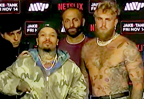 エキシビションマッチで対戦するデービス(左)とポール(Most Valuable Promotions公式YouTubeチャンネルより)