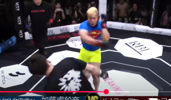 BD17オーディションで加藤(手前)は大泉のパンチを軽くかわす(朝倉未来のYouTubeチャンネルより)