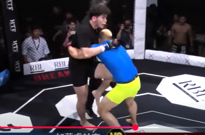 加藤はヒザ蹴りでダメージを与えた(朝倉未来のYouTubeチャンネルより)