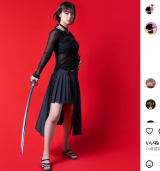 - スカートに太ももを見せて刀を握りポーズを決める長野(@juria_210)