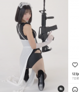 ・”デカ女”でバズったラウンドガール、“小悪魔”コスプレに「腹筋バキバキですやん」