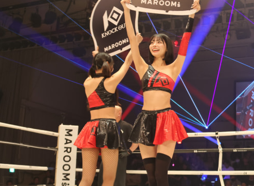 昨年度のラウンドガール衣装でリングに立つ米倉みゆ