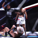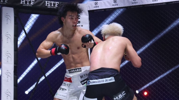 細川がパンチでダウンを奪う!
