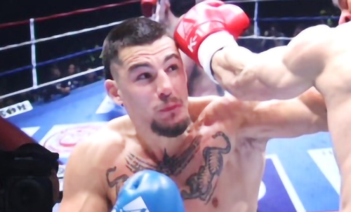 王座獲得するも、手を骨折したと語ったターザン(写真は5月のK-1 BEYOND)